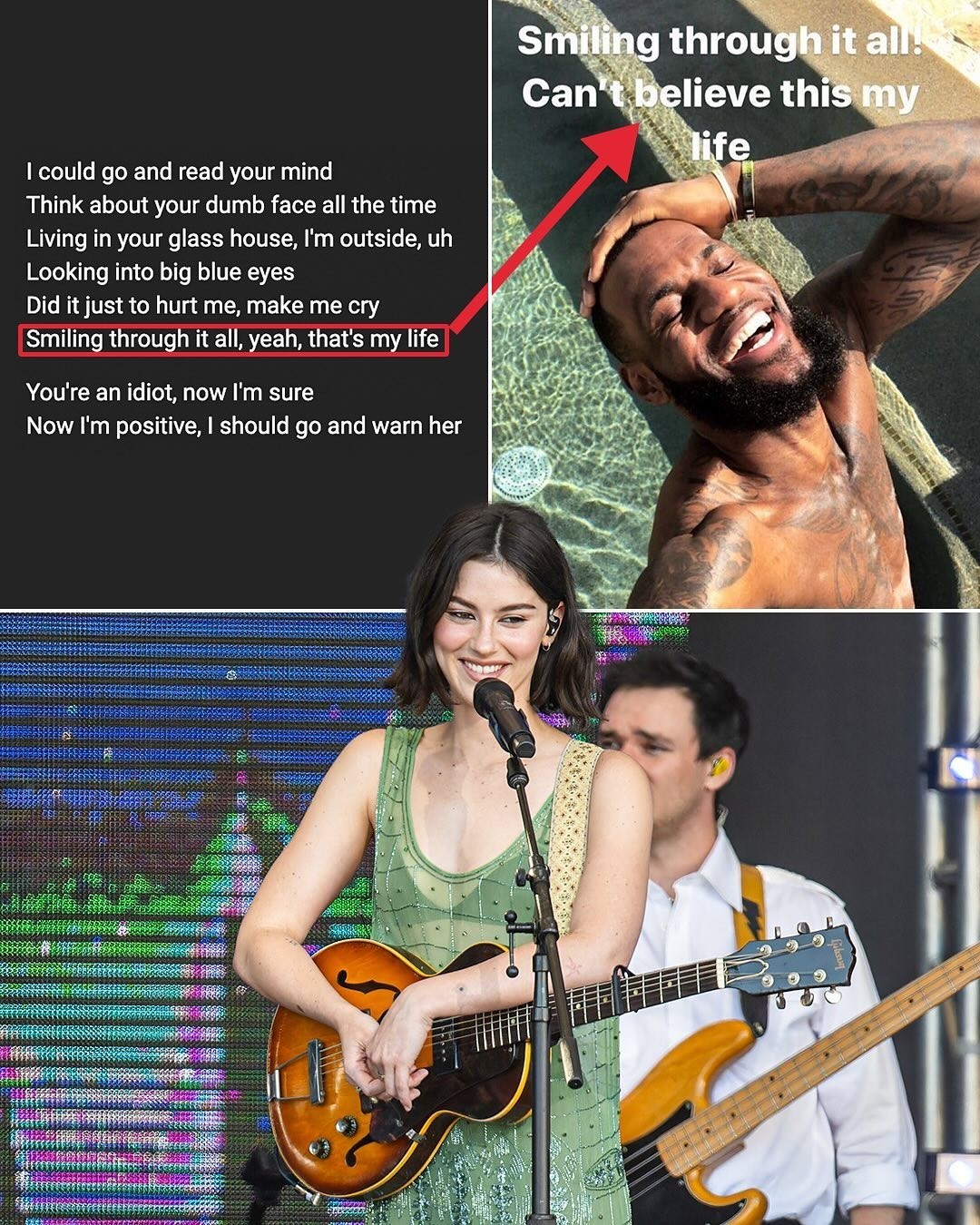 詹姆斯在2018年晒出自己大笑的照片并配文写道:“Smiling through it all, yeah, that's my life.(微笑面对一切,是的,这就是我的生活。)”Abrams则将这句配文加入到了《That's So True》这首歌中。