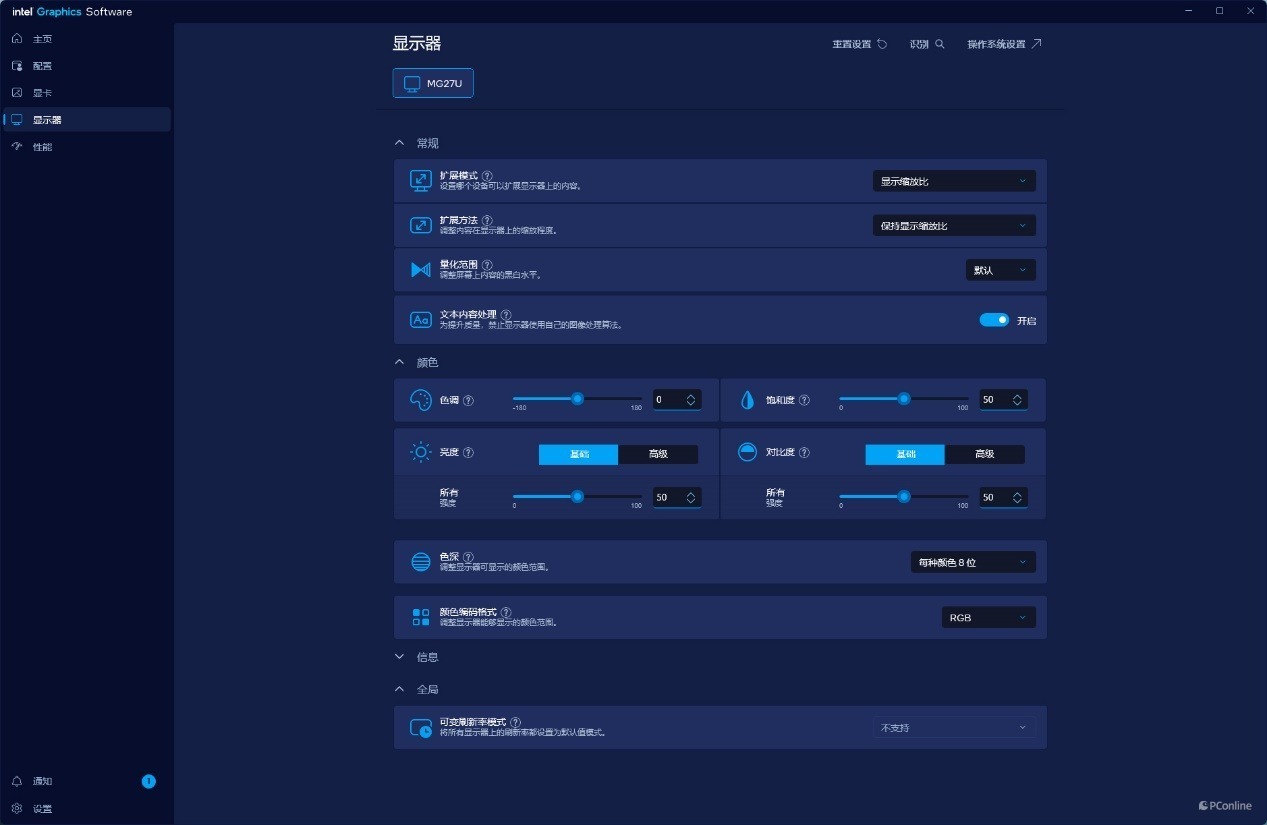新一代驱动软件提供了极度丰富的自定义功能,比如针对显示的亮度调节、饱和度调节、色深调节、颜色编码调节等,对于部分专业人士来说,这些确实是实用性极高的功能。