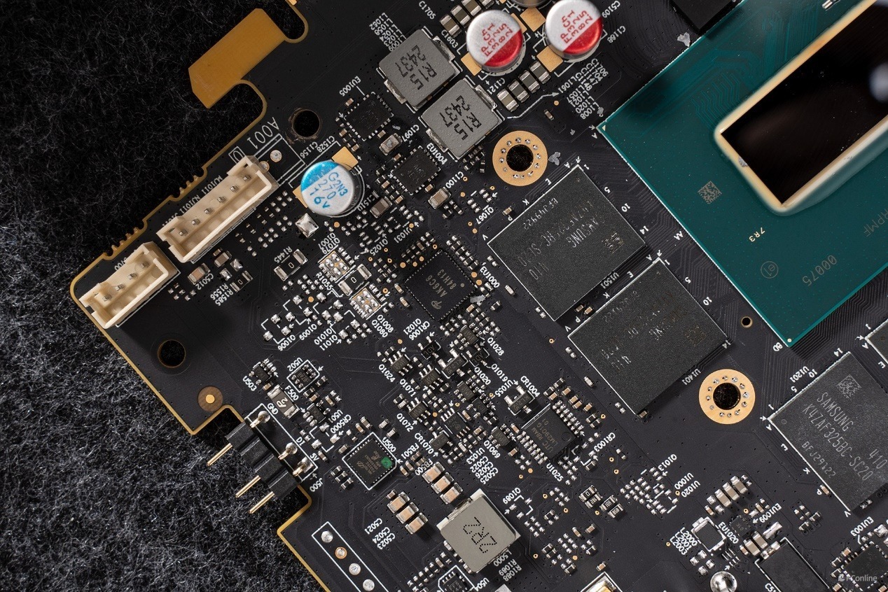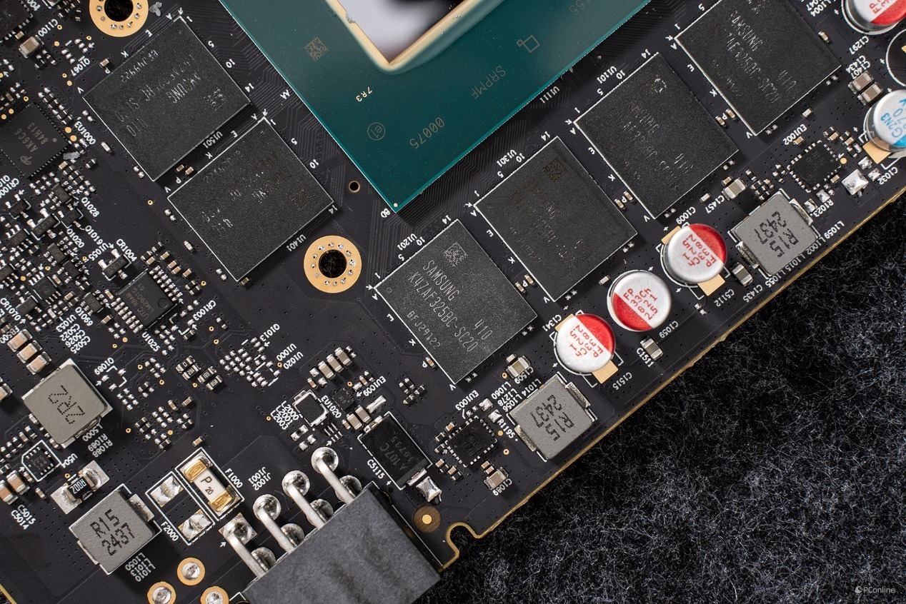 接着看看显存芯片,其采用了三星192bit GDDR6显存,一共6枚,即每个的容量为2GB。