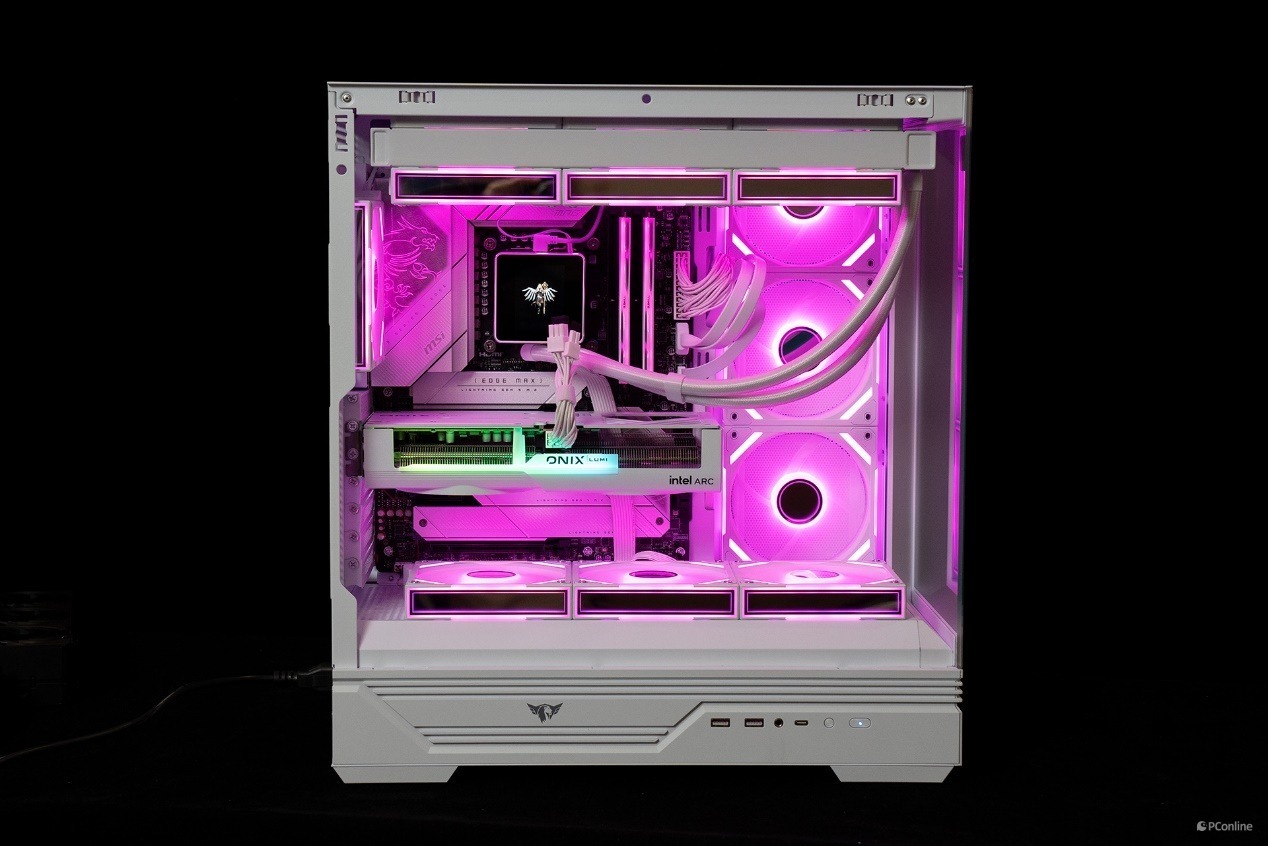 接下来上机看看效果,ONIX追日B580 OC放在白色机箱里面实在太合适了,纯白配色完美融合整机主题。