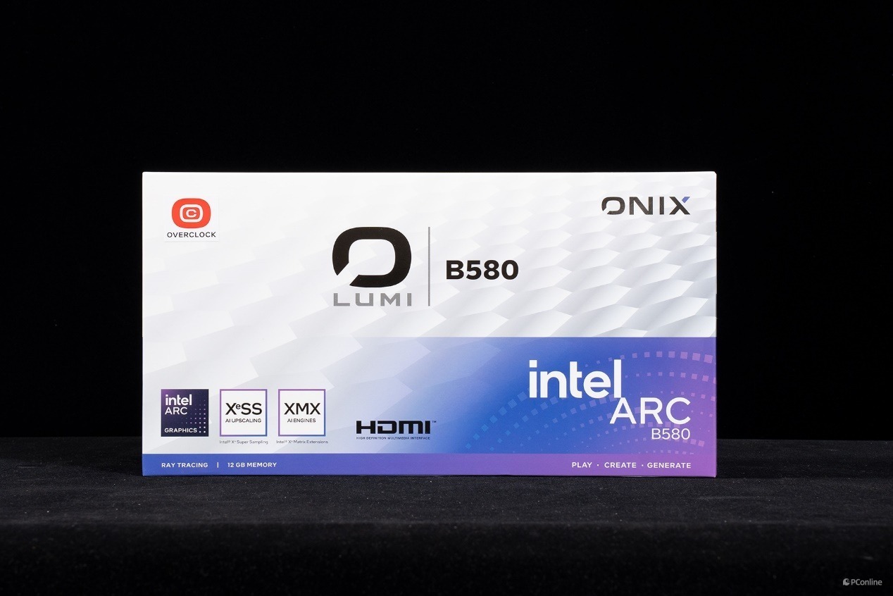 设想总是美好的,但B580显卡的真实体验到底如何,今天我们收到了来自Onix的非公版B580——傲世ONIX LUMI 追日 Arc B580 OC(以下简称为ONIX追日B580 OC),接下来就一起开箱体验一下这块显卡生力军的出品吧。