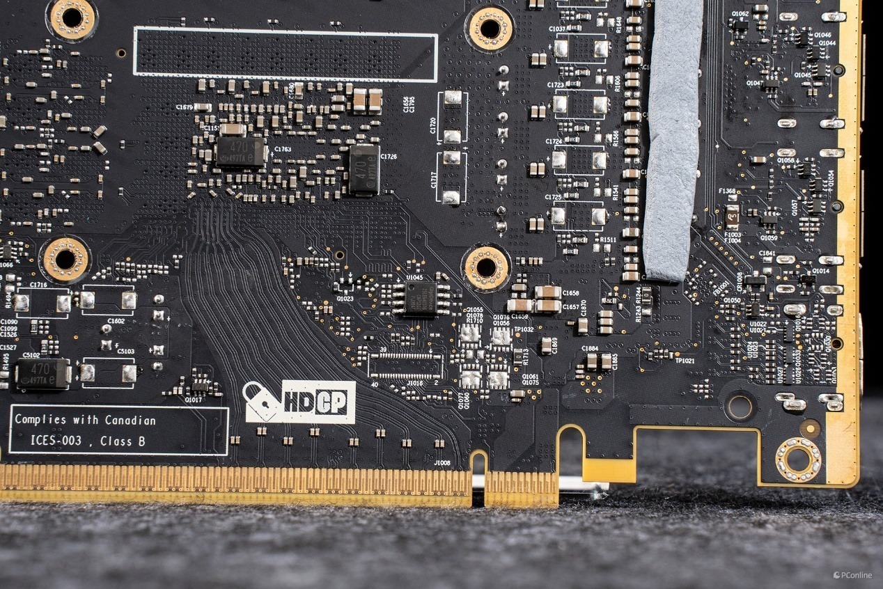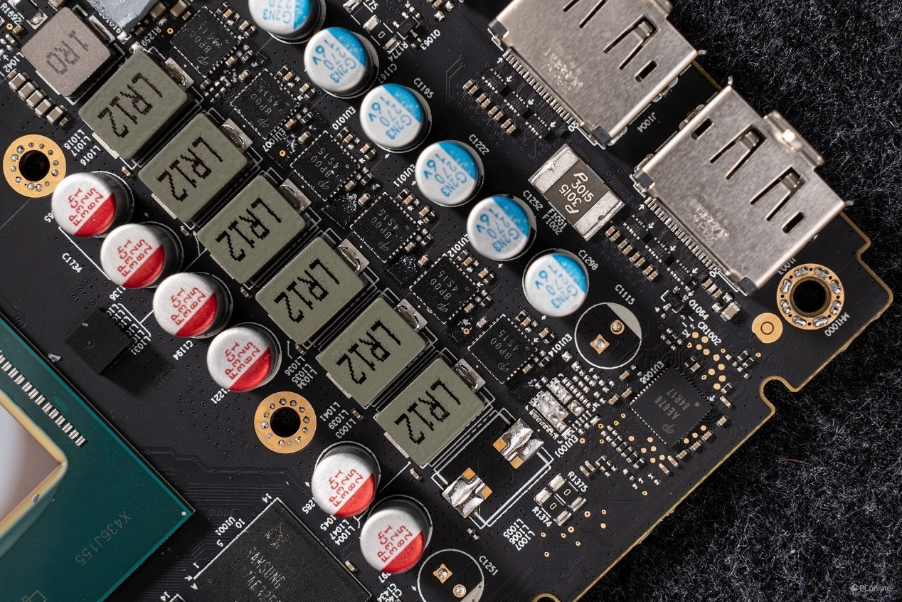 供电接口的设计比较有趣,这张卡采用了8Pin供电接口,但是PCB内部还预留了一个8Pin接口的焊盘位置。