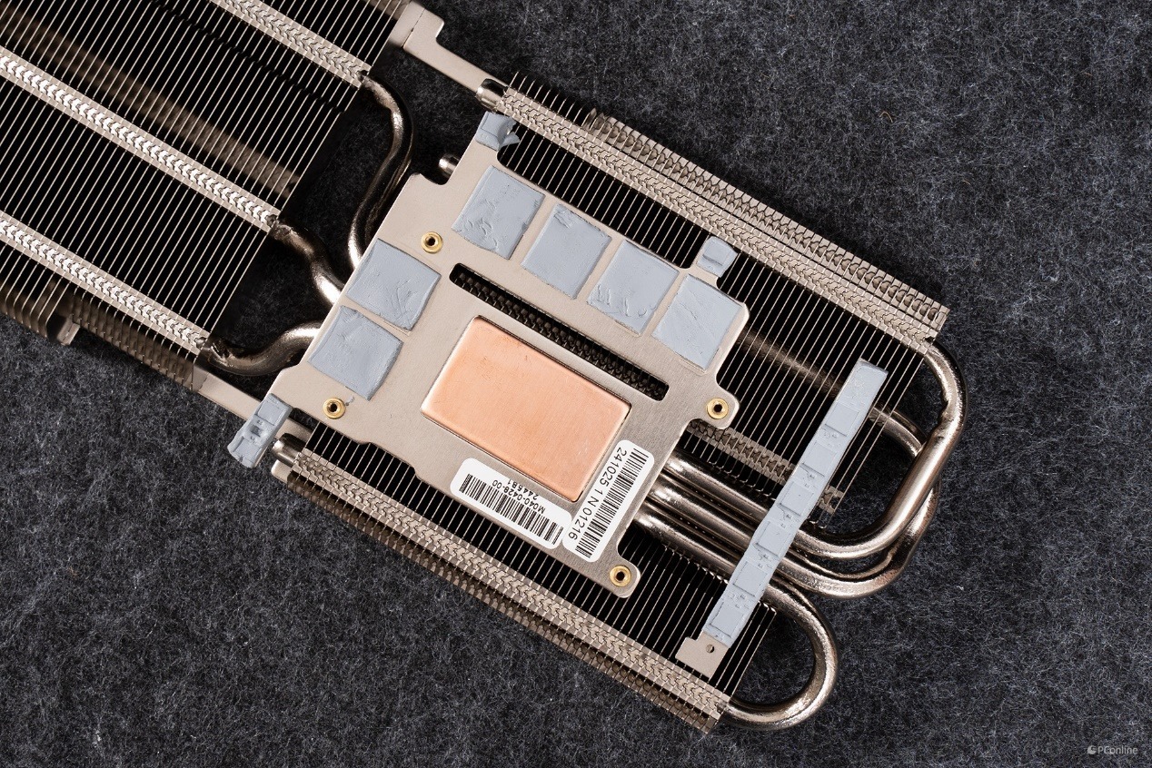 看完PCB再看散热器,纯铜底座是时下独显的基操了,但依然要为这个做工规整的散热鳍片点赞。