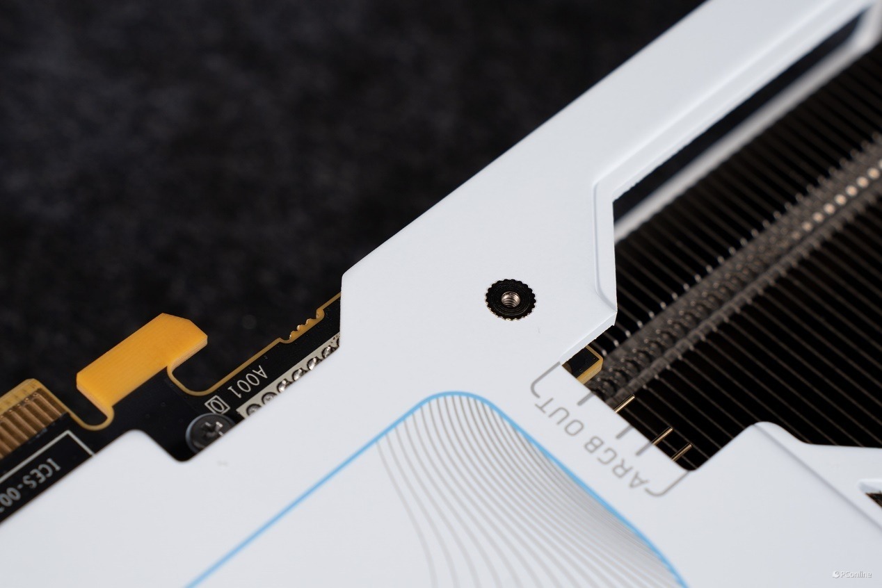 傲世将显卡的LOGO和供电接口设置在了侧面中央, LOGO处是ONIX | LUMI的字样,比印刷在单独的柔光模组上,傲世不但把品牌印上去了,还强调了显卡系列名,供电接口则是延续了公版的8Pin。