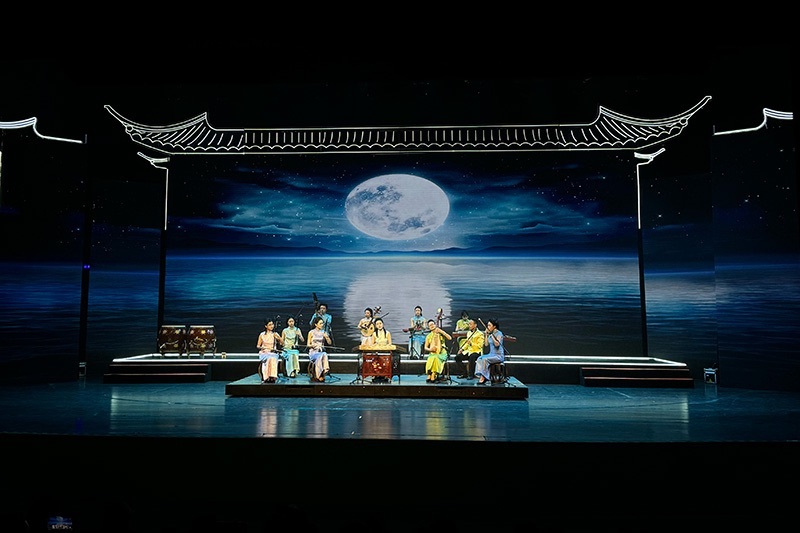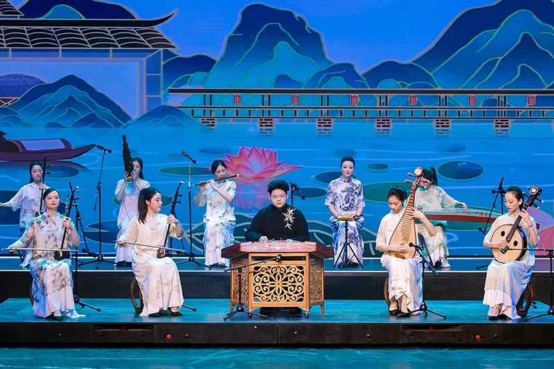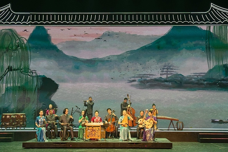 江南丝竹流行于长三角地区,音乐典雅、细腻、流畅、委婉,是秀美的江南山水及善良、纯朴、细腻的江南人民性格的生动写照。音乐会上,上海市群众艺术馆清韵江南丝竹乐团、三林镇江南丝竹乐团、苏州吴平国乐团、杭州艺术学校“相和”江南丝竹乐团、阜阳师范大学颍淮之韵民族乐团、无锡市民族管弦乐学会山水清音民乐团、江苏省太仓市五洋丝竹乐团等11支长三角优秀团队带来了《中花六板》《行街》等传统“八大曲”和多首具有江南丝竹音乐风格的新作品,充分体现了江南丝竹保护传承的最新成果。