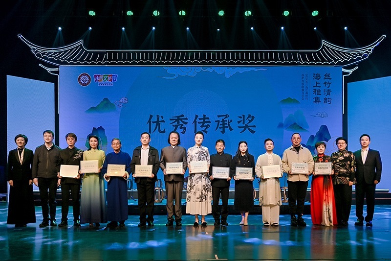 展演开始前,主办方向各参演团队颁发“长三角江南丝竹保护传承联盟”优秀传承奖。主办方还开设了晚上的上海专场演出,来自上海各区和各行业的13支江南丝竹乐团依次登台,参演曲目上同样兼具传统与创新。