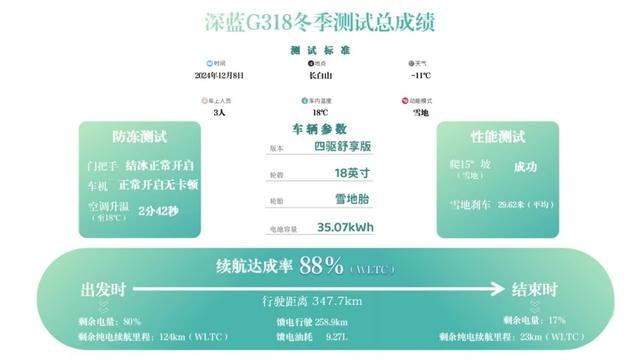不难发现,深蓝G318在本次冬季测试中,展现出了不俗的“热管理”实力,同时,在极寒环境下,能耗方面同样较为出色。当然,驾控表现也会是深蓝G318的加分项。可见,深蓝G318在技术方面的成熟与可靠性,解决了消费者冬季用车痛点,让用车更放心。