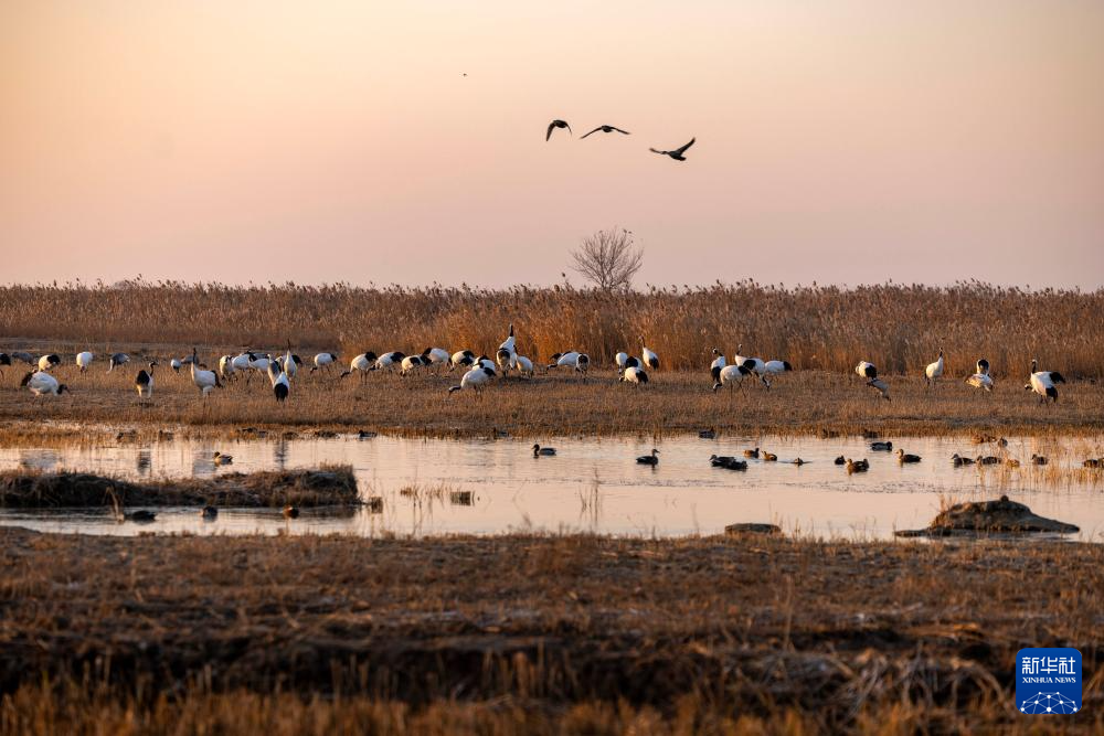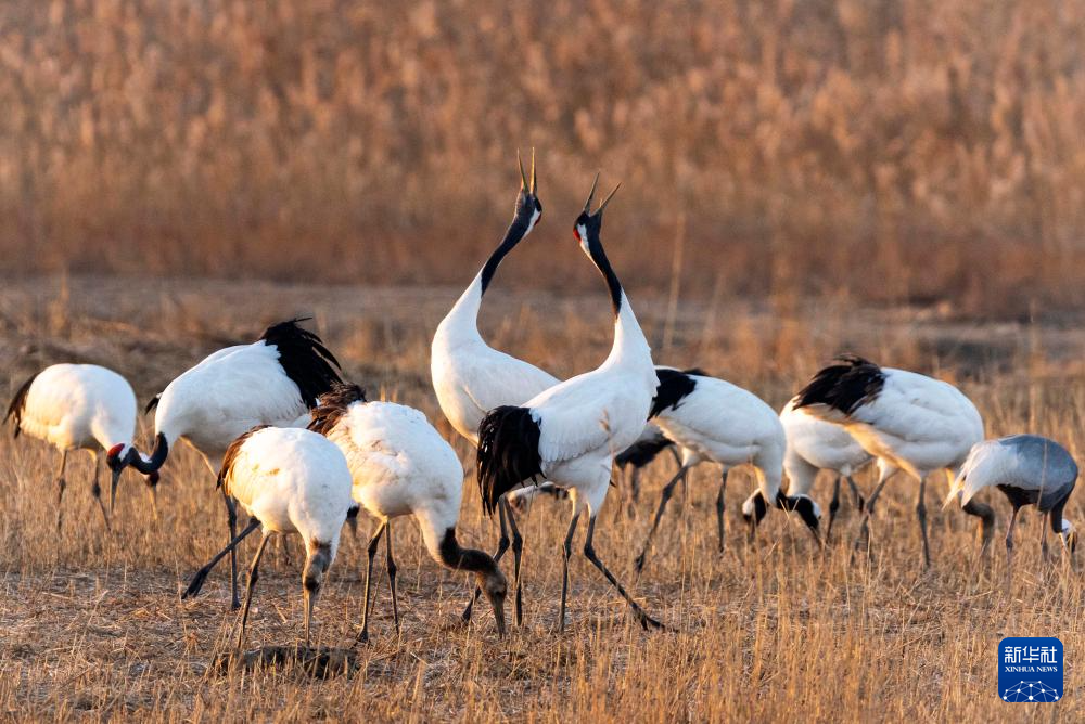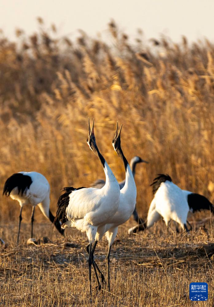 目前,大批丹顶鹤飞抵江苏盐城湿地珍禽国家级自然保护区越冬。该保护区位于黄海之滨,是全球9条候鸟迁飞通道之一的“东亚-澳大利西亚”路线上的重要一站,每年都有超过600只野生丹顶鹤来这里越冬。