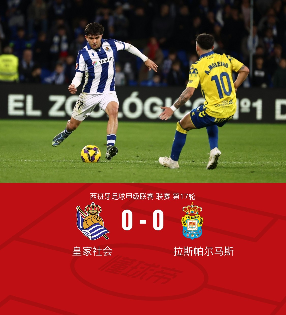 在西班牙足球甲级联赛第17轮的较量中,皇家社会坐镇主场迎战拉斯帕尔马斯。经过激烈的对抗,双方均未能攻破对方球门,比赛以0-0的比分收场。两队在场上展现了顽强的防守和不懈的拼搏精神,尽管创造了一些得分机会,但都未能转化为进球。最终,皇家社会与拉斯帕尔马斯各取一分,平分秋色。