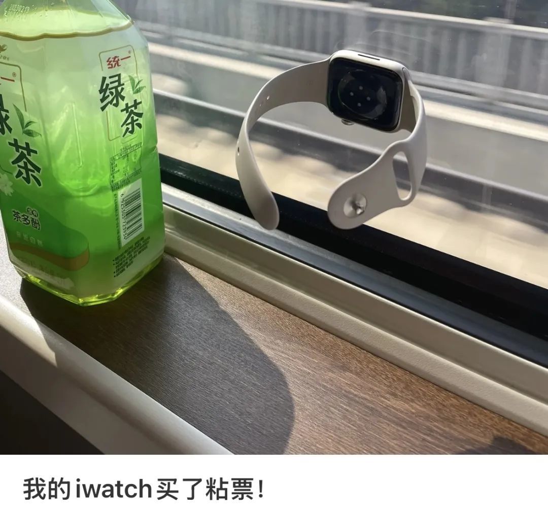 总之事情就是这样发生了,一块苹果手表被牢牢吸附在了高铁车窗上。