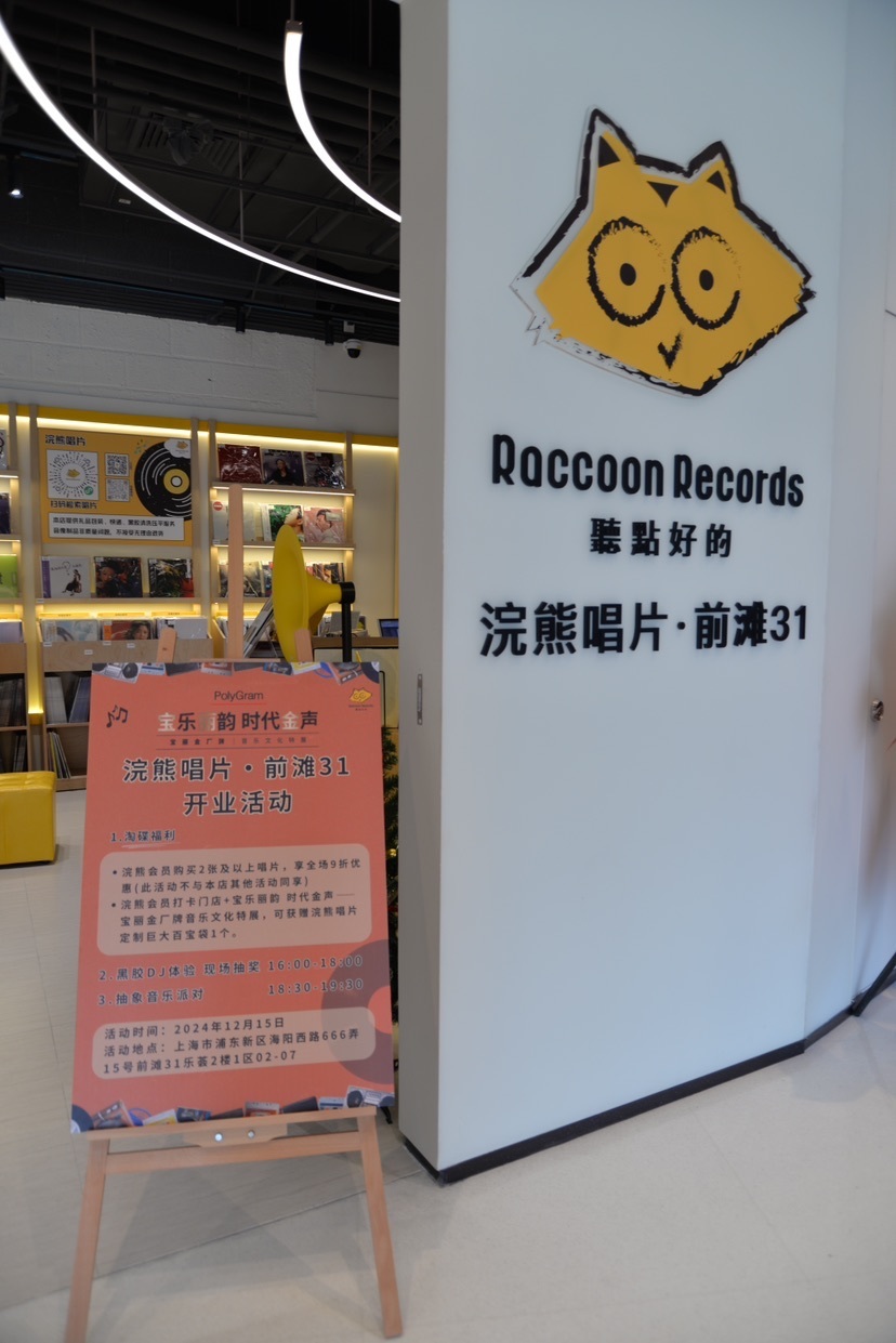 与“宝乐丽韵 时代金声——宝丽金厂牌音乐文化特展”同时盛大开幕的,还有浣熊唱片在上海的第三家、浦东新区的第一家门店——浣熊唱片·前滩31店。作为中国知名的实体唱片品牌,浣熊唱片此次在前滩31·上海流行音乐中心开出的全新门店,将打造成集实体唱片、唱机和周边等销售、音乐文化互动展览和音乐表演共享等为一体的多功能聚合空间。随着浣熊唱片正式入驻前滩31·上海流行音乐中心,拥有环球音乐(上海)娱乐有限公司、JZ Music、阆风文化以及交通银行前滩31演艺中心和黑匣子展演空间等的前滩“音乐+”创享城再添重要一员,为实现世博地区文化高质量发展的目标提供坚强助力。