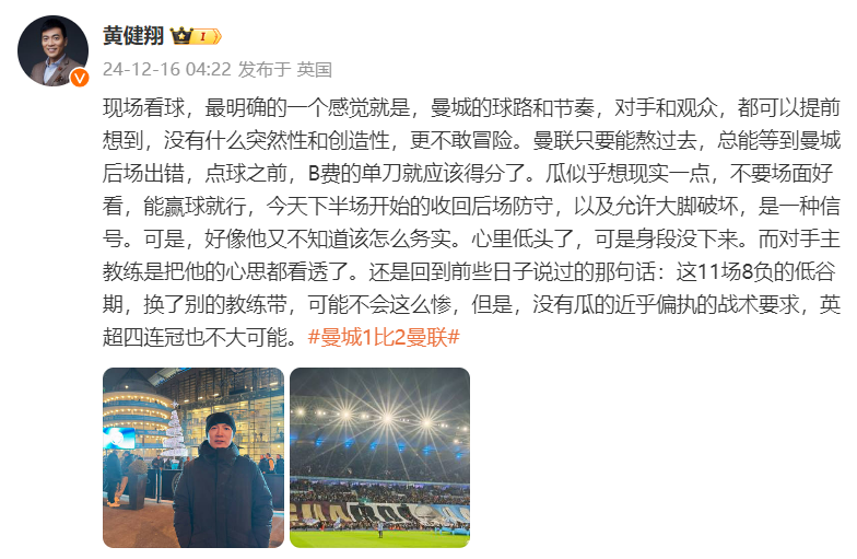 知名足球解说员黄健翔发长文点评道: