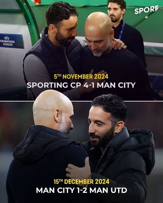 在个人执教层面,阿莫林完成对瓜迪奥拉的两连胜,11月6日欧冠阿莫林曾率葡体4-1大胜曼城。