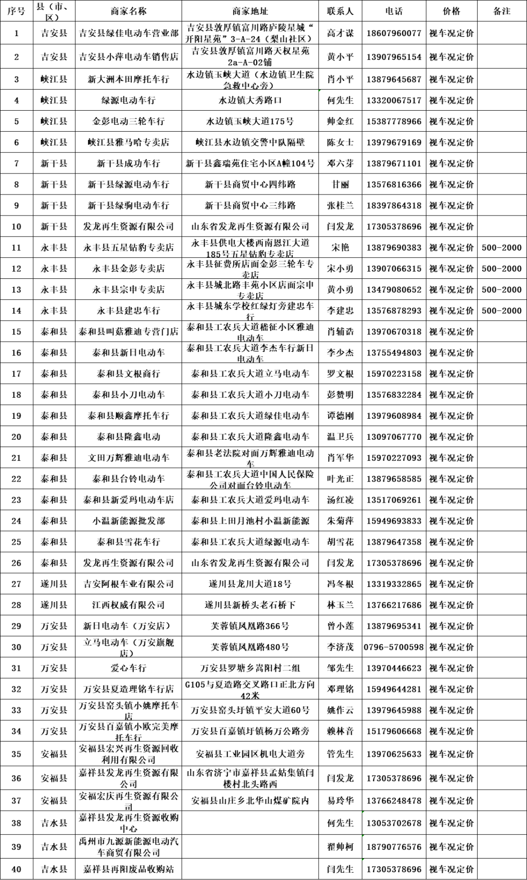 当前全市公安交警部门正在对不符合国家标准的三轮、四轮载客低速电动车(俗称“老头乐”)开展集中治理工作,截止目前,全市已查扣“老头乐”1374余辆,下一步,为彻底消除安全隐患、引导车主主动淘汰,经吉安公安交警走访相关部门和企业,全市已有40家门店愿意整车回购“老头乐”、15家门店仅回收电池(回购门店信息后续还会更新中......)