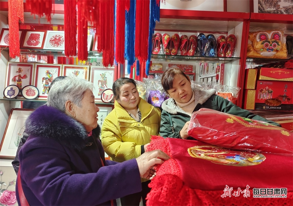 “我跟董老师学习绣香包有四年时间了,绣的有肚兜、鞋垫、拖鞋、枕头顶顶,绣好后给我代销,这四年大概收入有两三万元。”庆阳香包从业人员杨海霞说。