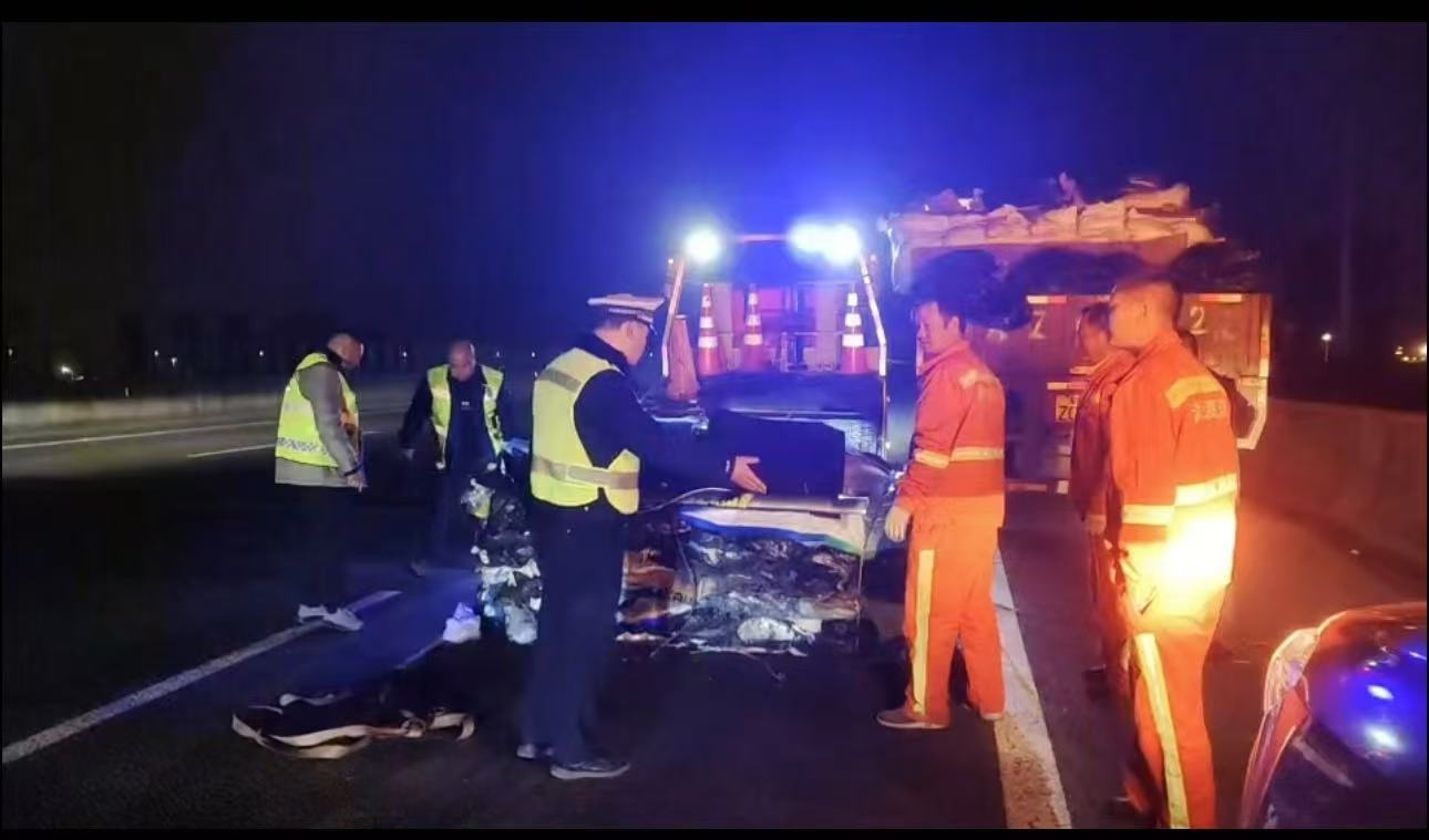 指挥室值班人员立即嘱咐司机打开双闪并在来车方向150米外设置警告标志,同时要求车上人员迅速转移至安全地带。接警后,四中队民警程军带领辅警祁诗科赶赴现场处置,抵达后发现一个巨大的压缩捆扎物横置于主车道最右侧车道内,整个车道被完全占据。当时天色已黑,高速公路又无照明设施,驾驶员只能凭借车灯在近距离观察,而高速公路上车速较快,难以及时处置,极易引发交通事故。