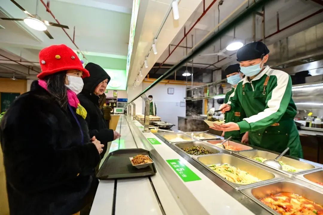 ▲江西省赣州市章贡区社区食堂积极响应“厉行节约”的号召,大力推广“小份菜”“半份菜”,在方便人们用餐的同时,呼吁节约粮食、珍惜粮食,减少餐饮浪费。图为居民在章贡区水南街道社区食堂取餐。人民图片