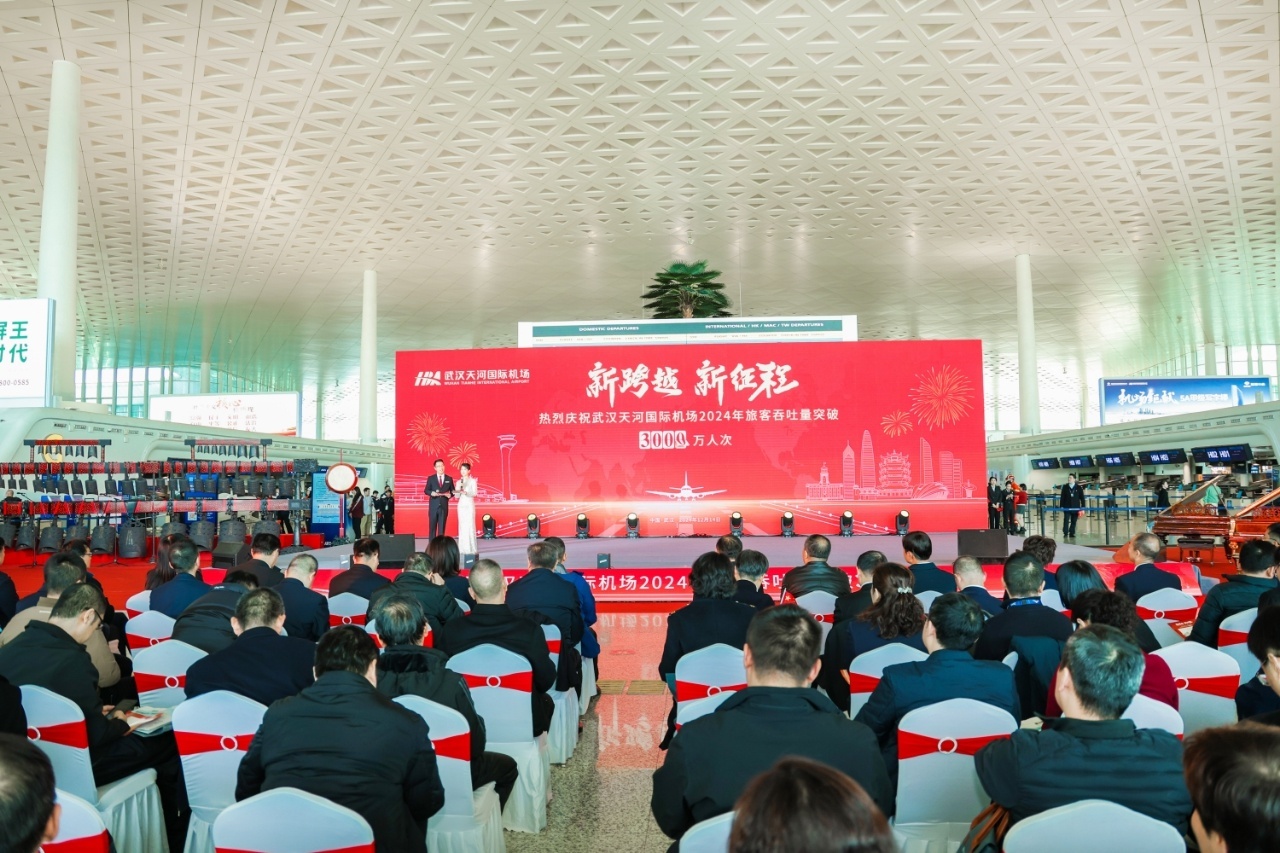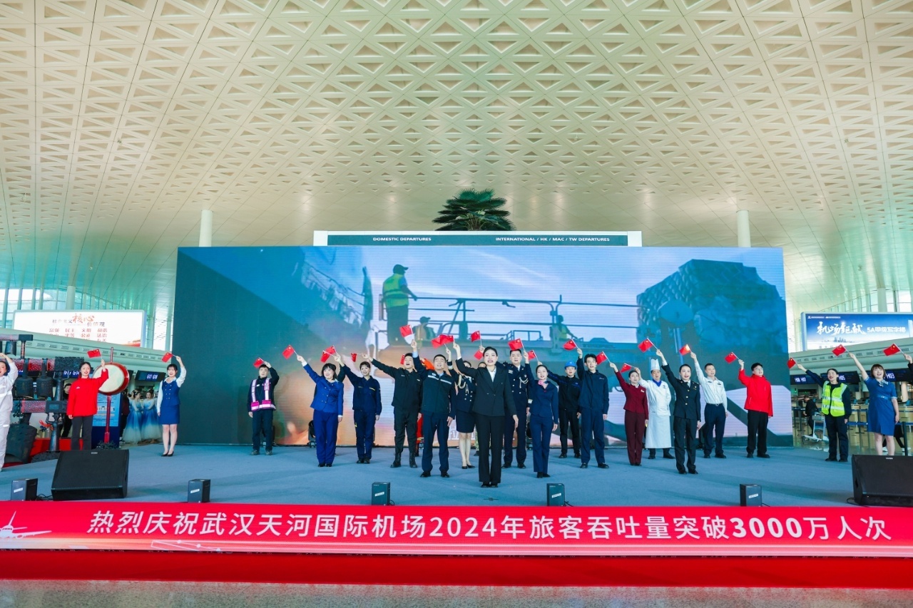 当日上午,武汉天河机场在T3航站楼举行了“新跨越·新征程 武汉天河国际机场2024年旅客吞吐量突破3000万人次”主题活动。活动现场气氛热烈,来自湖北省歌剧舞剧院的艺术家们和湖北民航各单位员工代表们共同带来了舞蹈《家住长江边》、情景剧《楚楚“空铁联运”上学记》《李白穿越游江城》、编钟乐舞《茉莉花》等多场精彩的文艺演出。