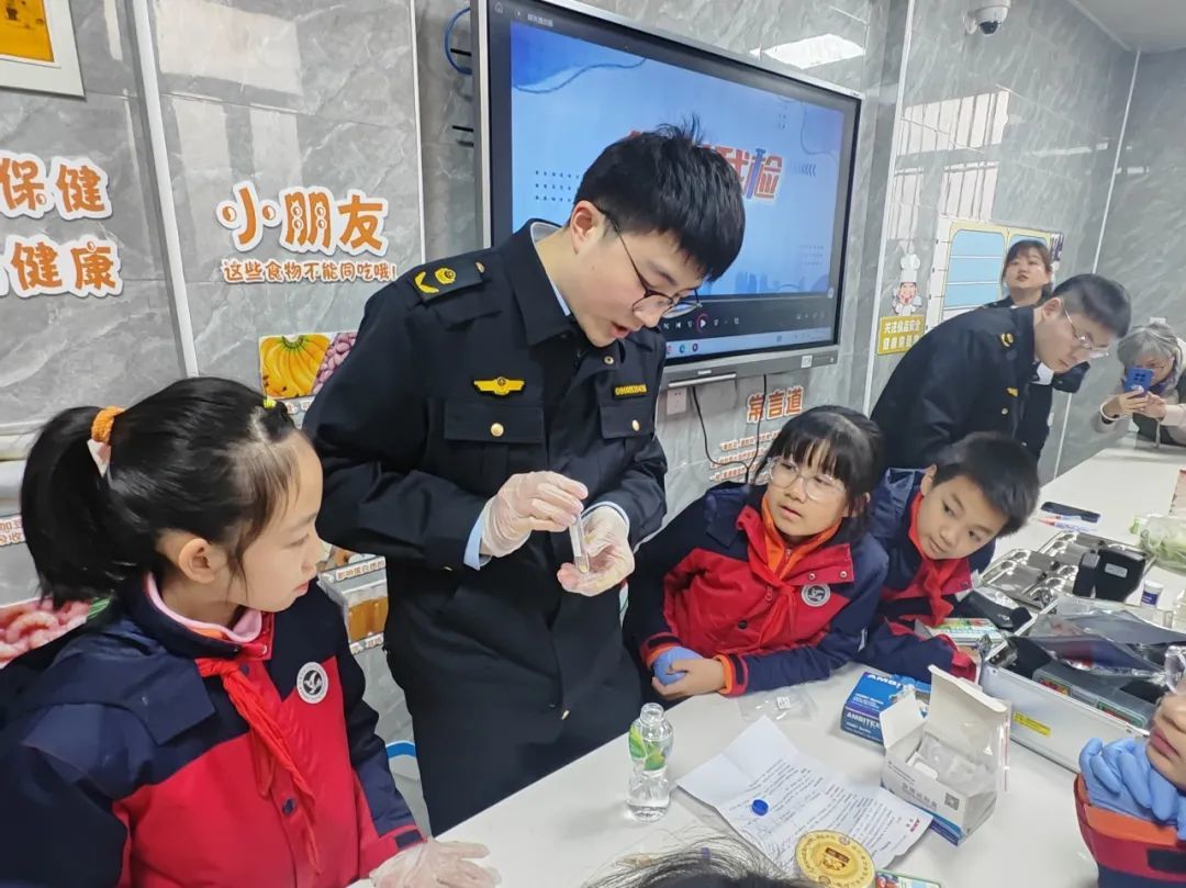 走进长宁路小学食药科普站“知食屋”,一场趣味十足的食药安全科普活动正在进行。阅览区定期更新的食品药品相关读物“干货满满”;在“乐研小屋”中,周家桥街道市场监管所的哥哥姐姐们为大家带来一堂生动的食品安全小课堂;来到快检区,同学们化身实验小专家,在专业人士的带领下开展起农药残留和食用油油品检测。