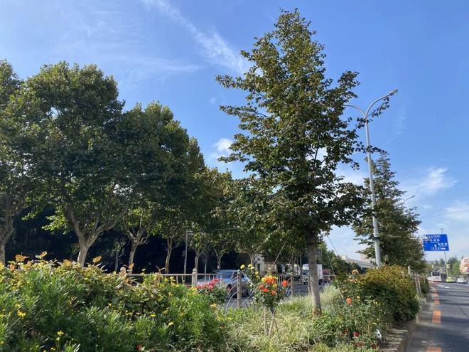 在不断的探索与尝试下,延安西路(娄山关路-古北路)成功获评绿化特色道路,成为71路中运量运营线路范围内主要景观观赏节点之一。路段最佳观赏期为4月到5月、10月到11月,春季“安吉拉”月季缤纷绚烂,秋季心叶椴光彩夺目,季相分明。
