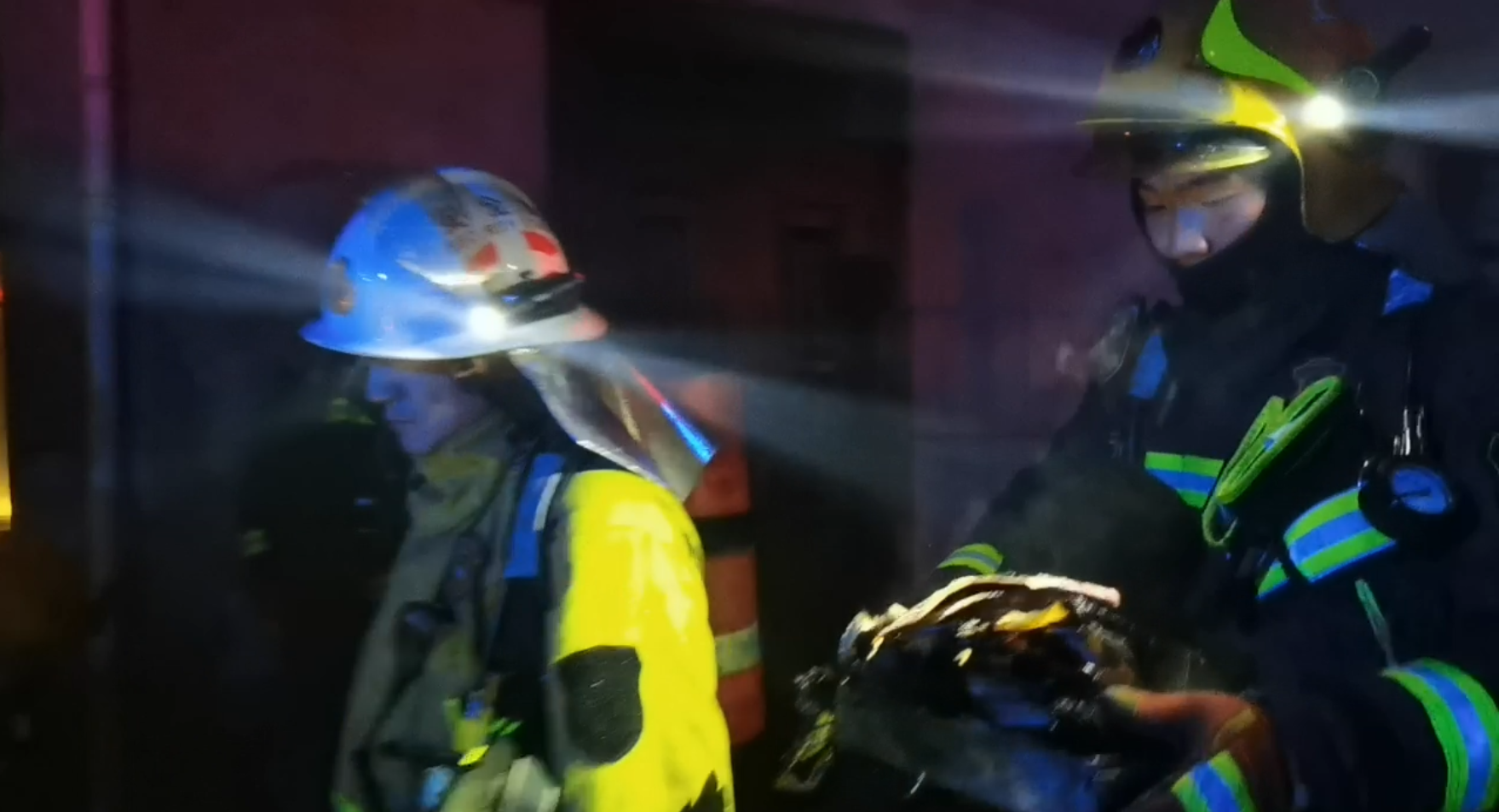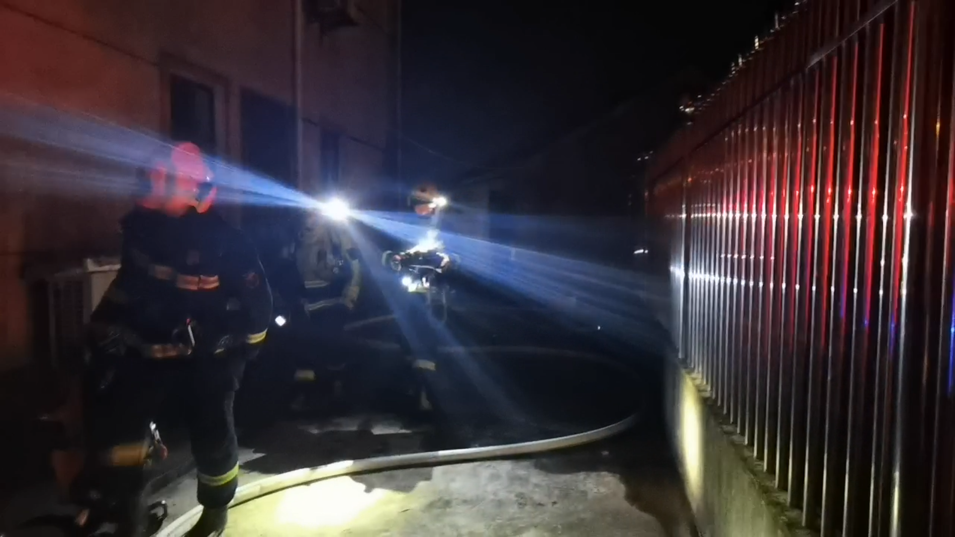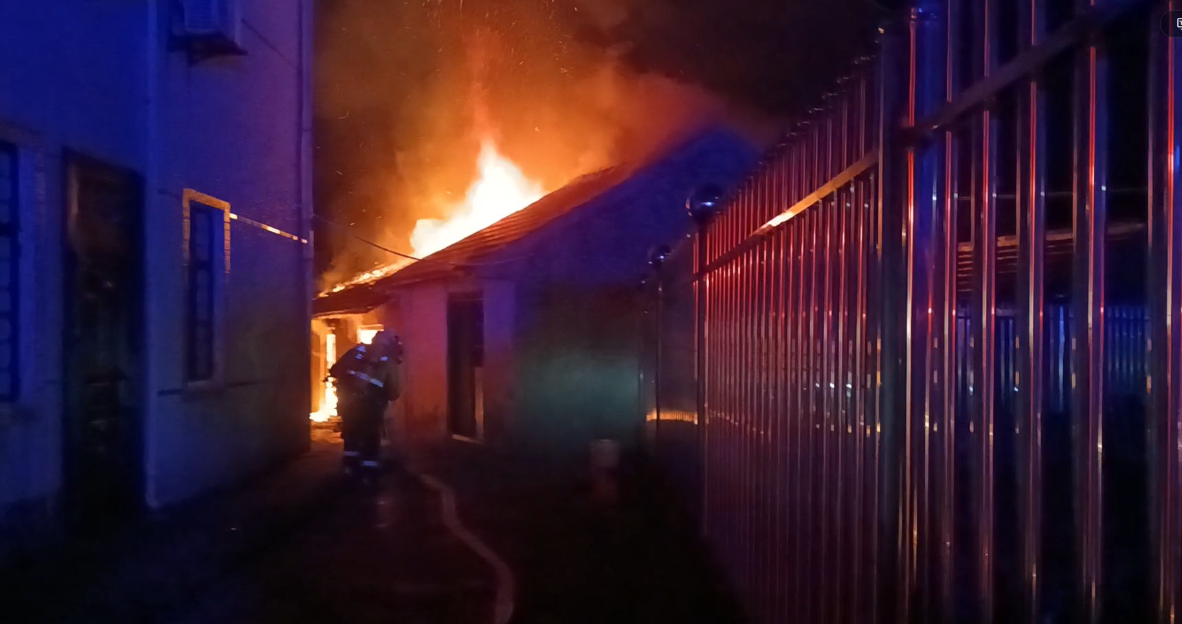 现场火光冲天,浓烟滚滚,火势正处于猛烈燃烧阶段,部分屋顶已出现坍塌,情况十分紧急。指挥员立即下令:一组队员用水枪控制火势,其他人员合力扑救。20多分钟后,明火被成功扑灭,所幸未造成人员伤亡。