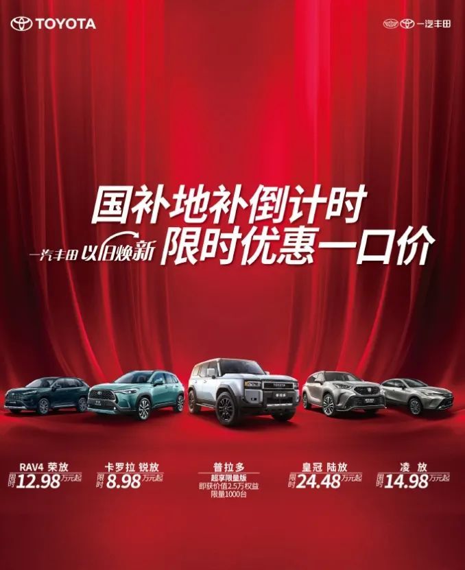 眼下的一汽丰田为了完成80万辆年销量目标,已经带来了7.98万元的卡罗拉、8.98万元的卡罗拉锐放、12.98万元的RAV4荣放以及14.98万元的凌放,这几台车对比此前好的时候,可以说是把利润压的比较低了,但到了明年,优惠力度大概率不止于此。