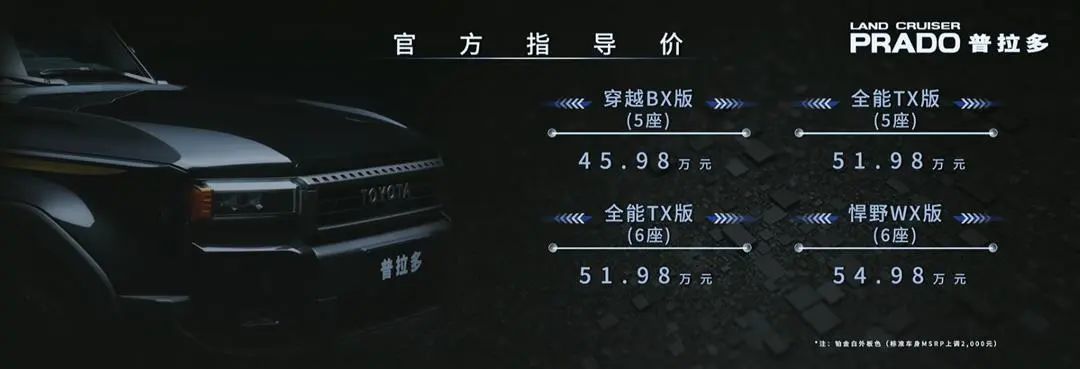 丰田旗下一些车型在国内市场一直是理财产品,排第一的当之无愧是普拉多。今年四月份现款普拉多在北京车展的前一天上市,打破了很多人对于价格的幻想。就在很多人都以为一汽丰田会改变策略,让普拉多走量或者说少挣点钱的时候,官方还是很坚定的带来了45.98-54.98万元的定价,超出了很多人的预期。