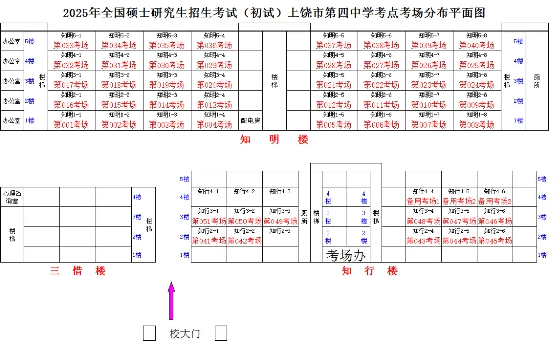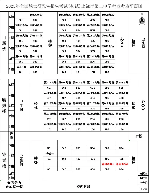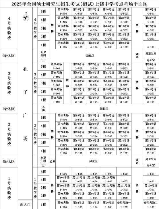 2025年全国硕士研究生招生考试(初试)即将来临,现公布上饶考区考点考场分布图。如有疑问,请咨询上饶市教育考试中心电话(0793-8205620、8224863)