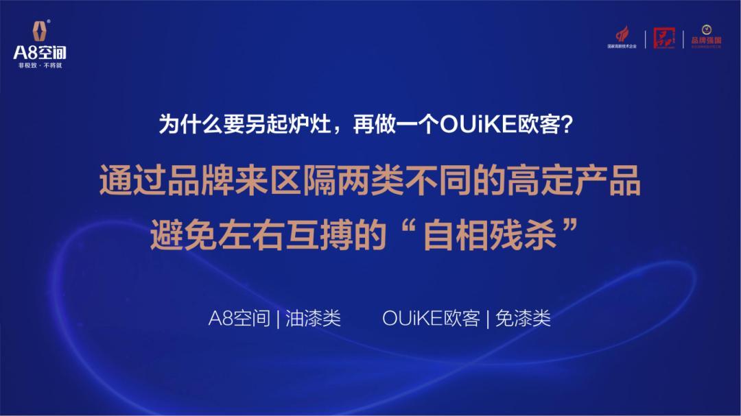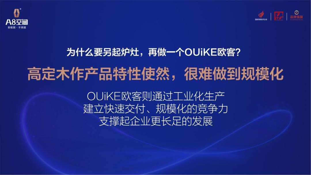 OUiKE欧客的产品均由经过市场验证的A8空间的成熟产品导入,经得起检验,因形成标准化、批量化、规模化,会比A8空间更具有颜价比,性价比。
