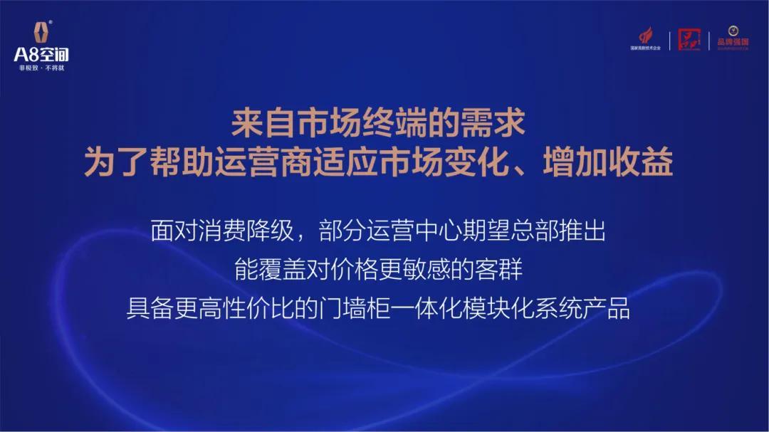 近年来,各个运营中心普遍反馈市场存在消费降级现象,期望公司推出能覆盖对价格更敏感的客群、具备更高性价比的门墙柜一体化模块化系统产品。
