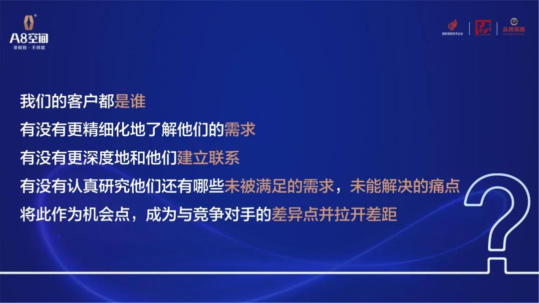 我们的客户都是谁?有没有更精细化地了解他们的需求?有没有更深度地和他们建立联系?有没有认真研究他们还有哪些未被满足的需求,未能解决的痛点,将此作为机会点,成为与竞争对手的差异点并拉开差距?