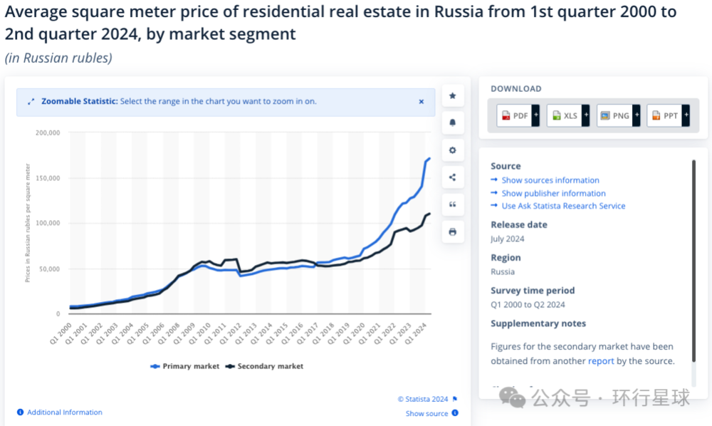 同时,住房在任何国家都是中产阶级家庭的核心资产,俄罗斯的房地产市场也在“狂热”中。在过去一年,一手房的市场的价格上涨了14.7%。