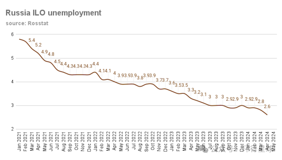 俄罗斯的失业率处于历史最低水平,下降至2.6%