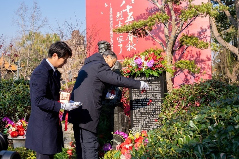 东方网记者项颖知报道:今年是俞秀松烈士诞辰125周年,牺牲85周年。为纪念革命先烈,12月17日,俞秀松烈士牺牲地纪念土撒土仪式在上海福寿园举行。来自上海市中共党史学会、中国社会主义青年团中央机关旧址纪念馆、华东师范大学俞秀松研究中心的代表,俞秀松烈士家属,以及党史专家和青年学子共同见证了这一时刻。