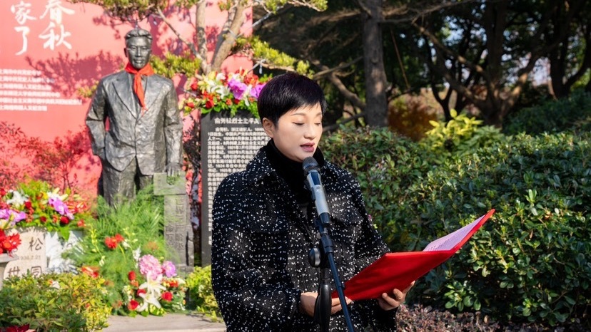福寿园人文纪念馆馆长伊华分享了俞秀松烈士与该园的深厚渊源。她表示园方将持续讲好生命故事、红色故事,让红色文化赓续传承。