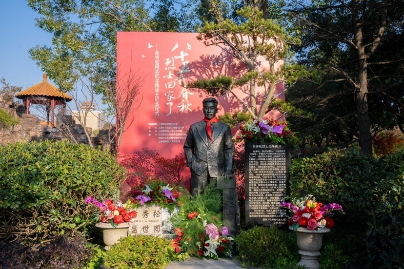 英灵无宿曾一直是俞秀松亲属心中的遗憾。在园方推动以及团市委支持下,2002年,俞秀松烈士纪念铜像于中国共青团成立80周年之际终于在沪落成。这捧纪念土由继子俞敏2019年从俞秀松牺牲地莫斯科顿河公墓取回,一瓶存放在诸暨的俞秀松烈士陵园内,一瓶带回上海被撒放于园内的俞秀松纪念像下。