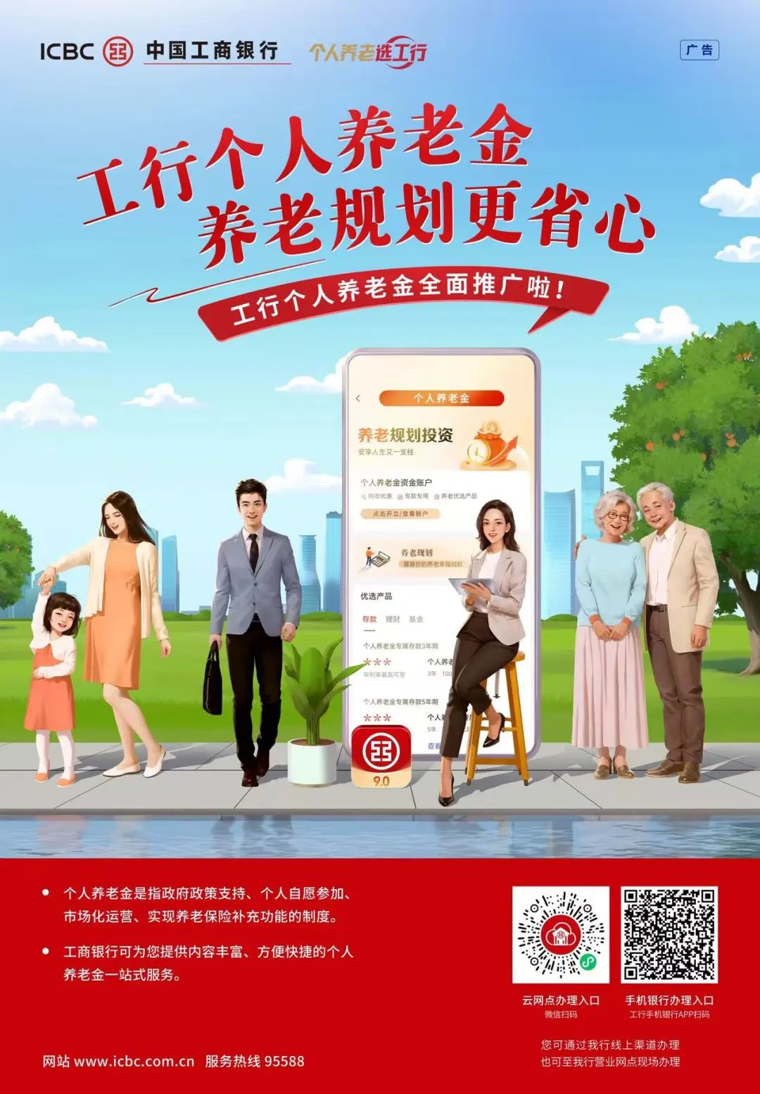 人力资源和社会保障部等五部门发布《关于全面实施个人养老金制度的通知》宣布,自12月15日起个人养老金制度从36个先行试点城市(地区)推开至全国。工商银行已同步向全国客户升级推广个人养老金“开、缴、投、增”一揽子智能化服务,通过科技创新为广大客户提供友好便利的服务体验。