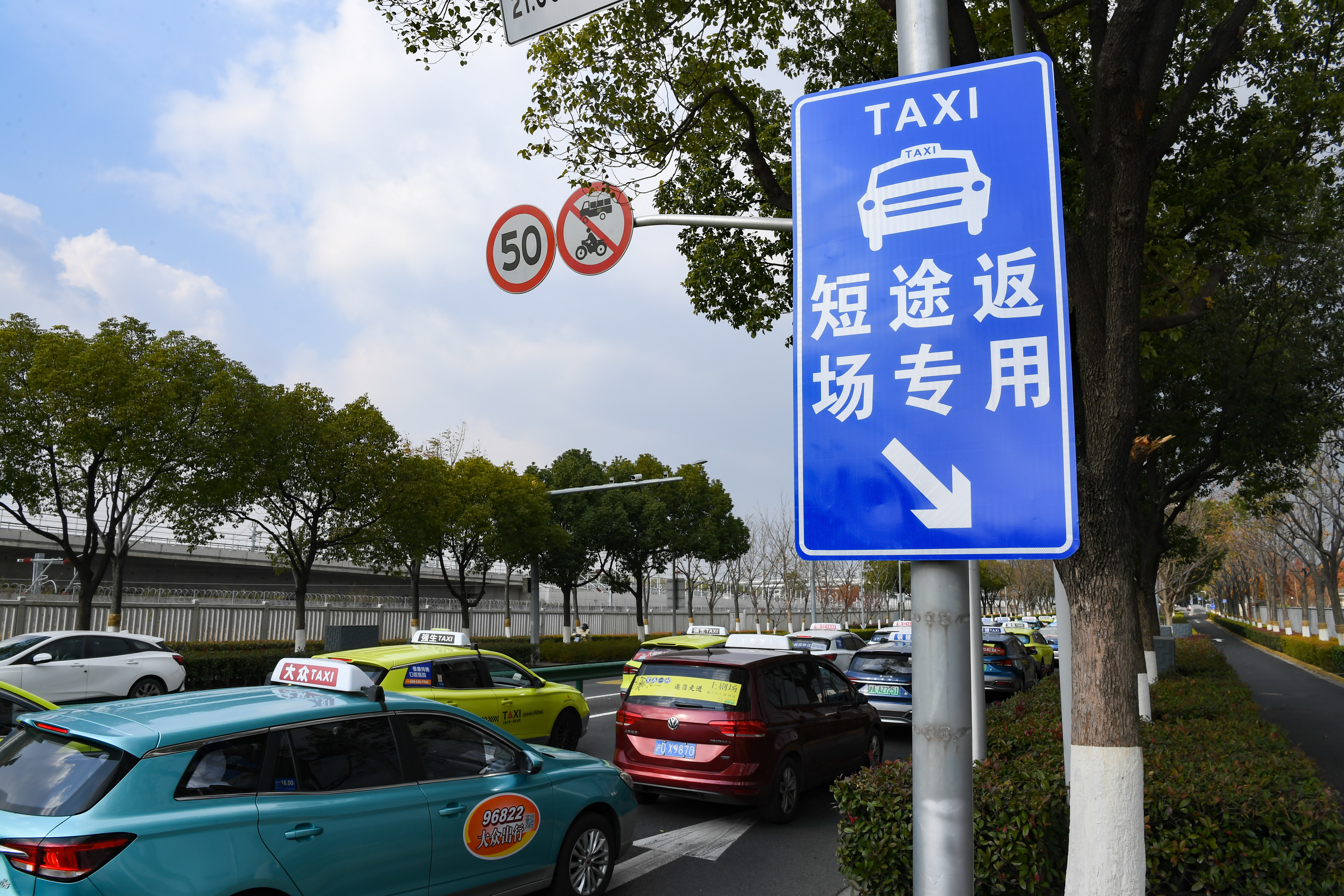 下午,在虹桥机场T2航站楼的出租车蓄车场附近,记者首次见到了这条备受期待的“短途返场专用通道”的庐山真面目。