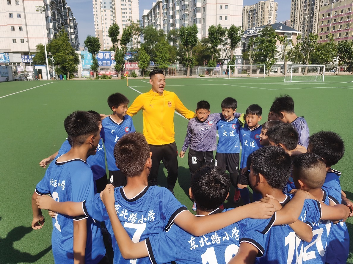 夕阳余晖下,近两百名孩子在大连市沙河口区东北路小学的足球场上尽情奔跑,这是该校八支足球精英梯队的日常训练。其中不少低年级孩子的踢球动作还谈不上娴熟,但从训练时的认真劲和时不时露出的笑脸中,能感受到他们对足球的喜爱。40年来,如此场景日复一日地重复着,贾秀全、冯潇霆、王大雷、于汉超、杨旭、马晓旭等400余位职业球员在这片场地上长大,成长为中国足球的中坚力量。