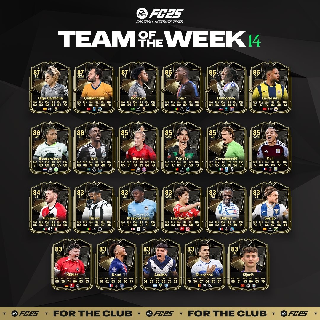 《FC25》刚刚上线了第14周的黑卡,其中,罗德里戈、恰尔汗奥卢、伊萨克在列。