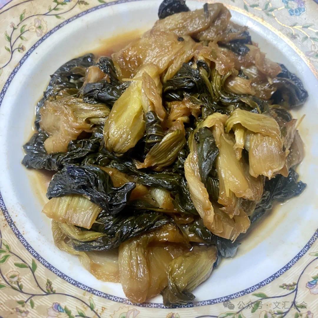 ◆ 㸆菜——这是我做宁波子弟最感骄傲、最喜欢的一道菜。它是如此粗犷、如此的用油用酱油用糖去对付块头结棍的芥菜各部位的烧菜法。每年过年我们皆做一大锅,可从除夕吃到初五。