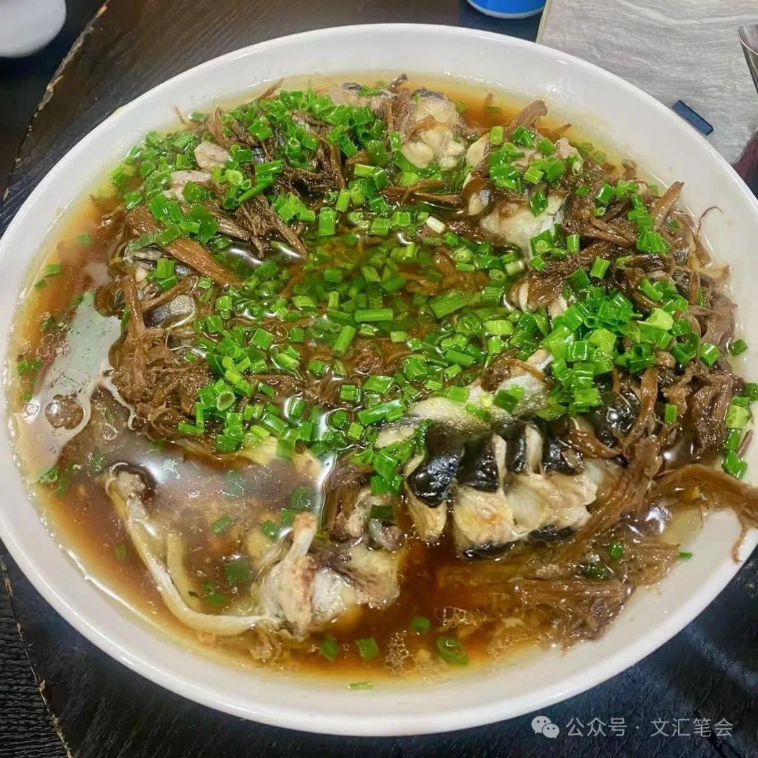 ◆ 鮝㸆肉(海鳗剖开,竹架撑开,晾高风干,是为鳗鮝)——许多别省份人一提到宁波菜,常都提“鮝㸆肉”。也就是鳗鱼干和红烧肉一起烧。肉的腴,进了鳗鮝;鳗鮝的鲜气,也渡到肉上。我不怎么懂得欣赏这道菜。家母离世后,我也没在外面吃过这道菜矣。哇,这说来,竟也五十年矣。