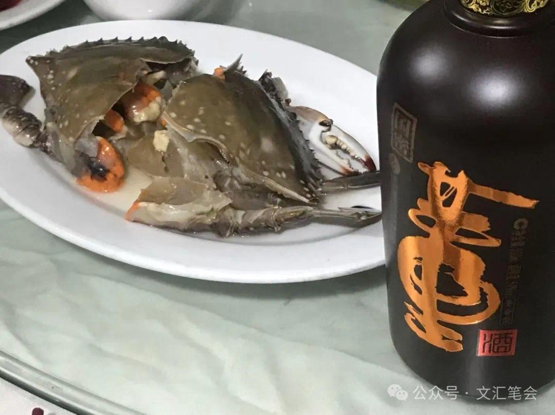 ◆ 呛蟹(生的海蟹、黄酒、盐、糖去腌)——其实更常做的是蟹熓(把蟹斩得细碎,腌在黄酒、盐、糖的玻璃罐子里)。