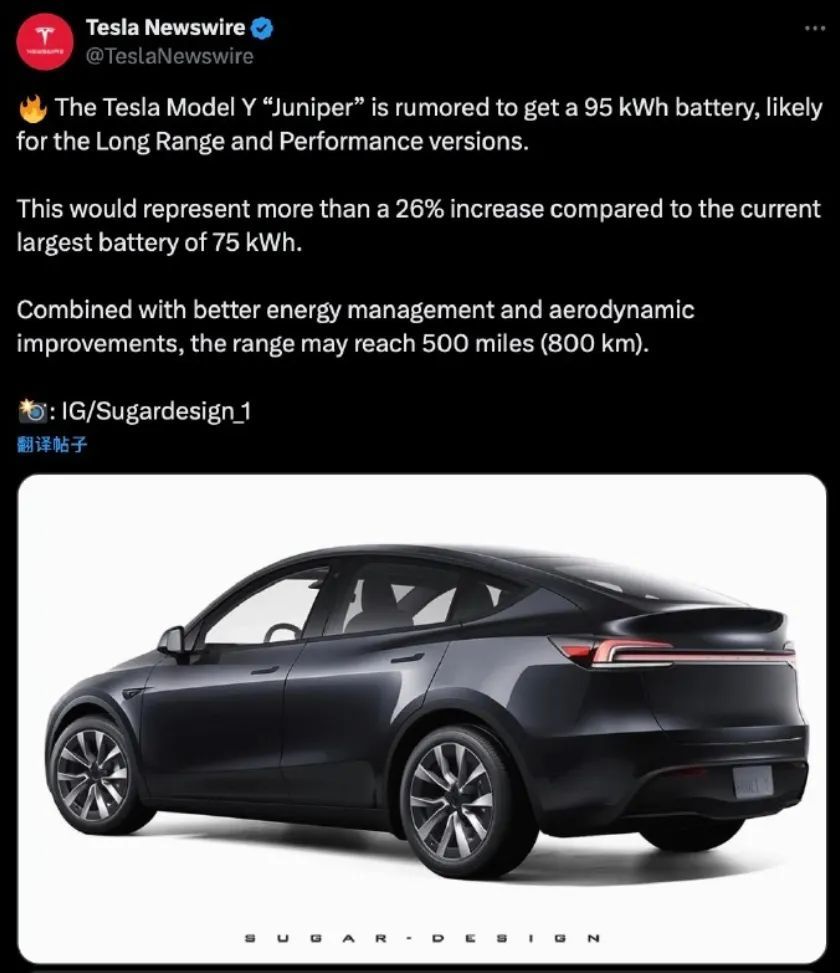 有外媒给出了一组新车的续航数据,其中单电机后驱版搭载 53 kWh电池,续航约 402 公里;双电机四驱版搭载 75 kWh电池,续航约 500 公里,根据现款Model 3和Y来推算,这数据无疑肯定是WLTC标准了。
