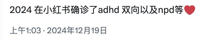 BIE:在自行 NPD 诊断热潮以前,网上曾流行过自我诊断 ADHD、焦虑症、抑郁症、躁郁症等。NPD 标签的使用和其他的心理标签有什么不同呢?