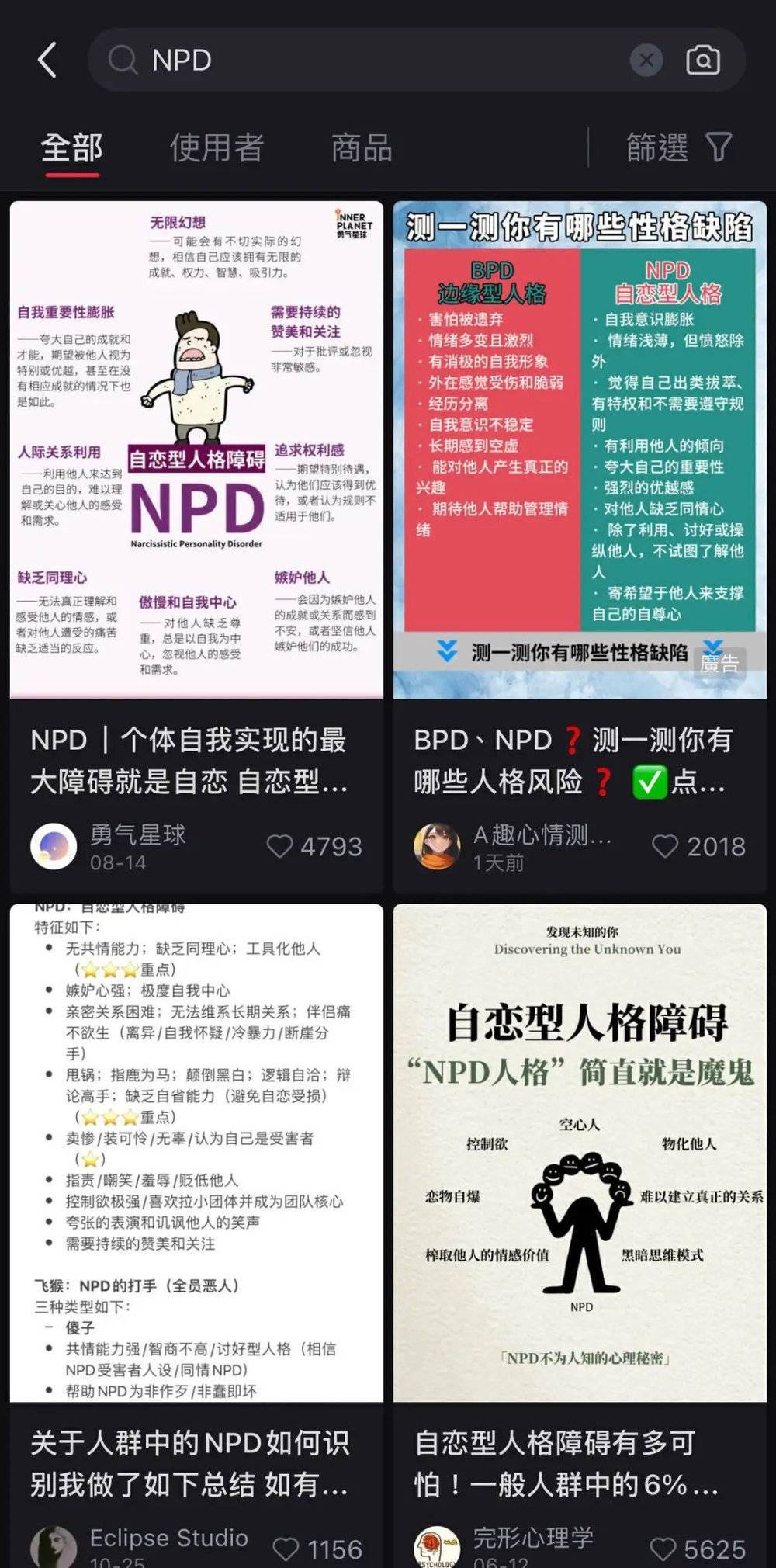 一时之间,网络上几乎所有人都在讨论 NPD:从猛烈指责节目嘉宾麦琳为 NPD、怀疑 XX 公众人物是 NPD,到通过行为、面部特征等方法教人诊断身边的人是否为 NPD,甚至到最后思考自己是否是 NPD。