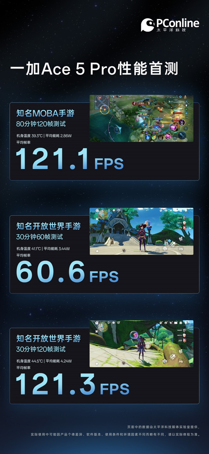 PConline也在拿到一加 Ace 5 Pro的第一时间对其进行了游戏帧率测试,可以看到一加 Ace 5 Pro无论是在帧率还是功耗方面都达到了行业领先的水平,「风驰游戏内核」的强大可谓是有目共睹了。