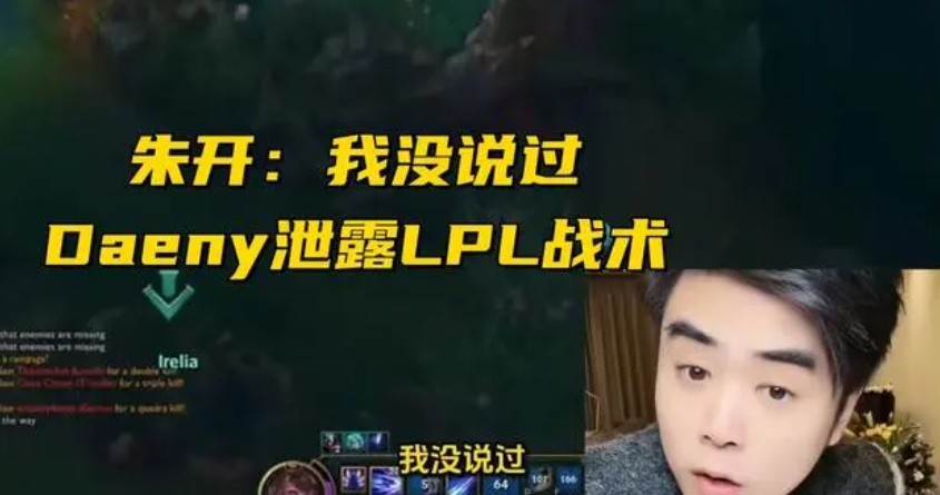 朱开在直播时先是回应了“泄露战术”事件,此前他一口咬定,Daeny只跟LCK训练不跟LPL队伍打,事情愈演愈烈之后,朱开立马改口:“那个是别人做的切片,我没说过,我对我说过的话负责,关于这个事情,我会在适当的时候去跟大家说,但我肯定不能现在说,不要把这个事情扩大了。”