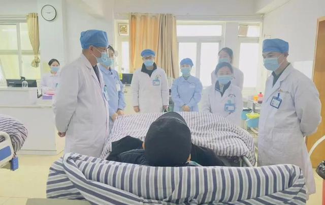 (▲杨红忠教授在呼吸血液内科查房、指导)