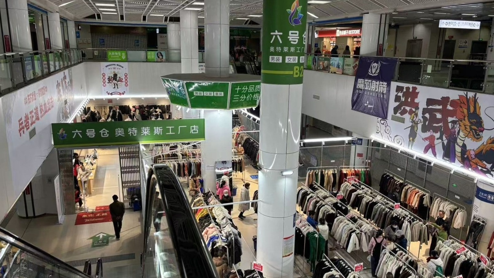 九派新闻获悉,近期,在武汉地铁洪山广场站D出口的地下通道,一家服装工厂店开业,不用走出地铁站就能直达店铺。